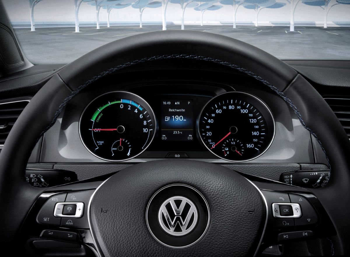 Some more examples of VW’s aftermarket-conversion-style approach to this car are the gear knob, which is an adapted version of the knob from a DSG gearbox; and the traditional ignition barrel, where you must insert the key and turn it to the starter motor position to activate the EV drivetrain.
